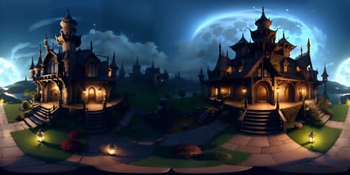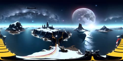 In this mesmerizing panorama, the moon shines brightly, casting a soothing glow upon the serene night landscape.