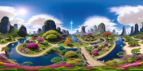 1960s Ethereal FantasyMasterpiece VR360 panorama, ultra-HD, floral opulence. Skyview, Japanese botanical garden, vivid VR360 botanical seascape. Foreground minimalist, grand, sprawling flora dominance. Realistic whimsy touch. High-color intensity, overwhelming VR360 allure.