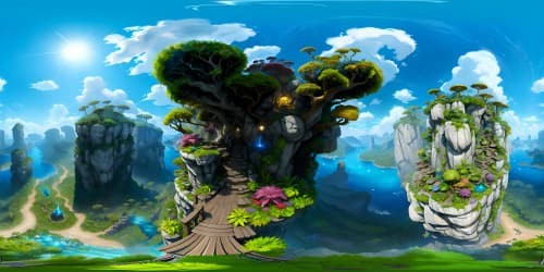 VR360 Pandora jungle from Avatar, luminescent flora, bio-luminescent creatures, floating mountains. Masterpiece quality, ultra-high resolution, distinct Pixar-style rendering. Mesmerizing VR360 fantasy, opulent biodiversity.