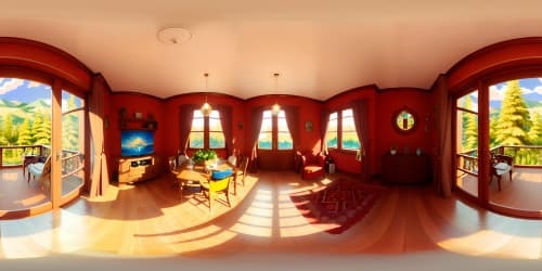 VR360 scene: Singular vibrant green pine tree, living room, centered. Walls, ceiling of glass, exposing expansive sky. Renovated Victorian-style fashion. Picasso-Cubism inspiration, ultra high res, masterpiece-quality. Light, shadows dancing, draping the exquisite indoor setting. Ideal VR360 immersion.