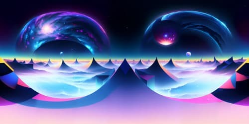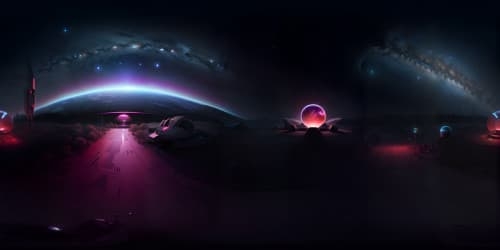 A breathtaking VR360 experience in a Cyberpunk style space panorama with stunningly detailed nebulas, galaxies, and supernovas.
