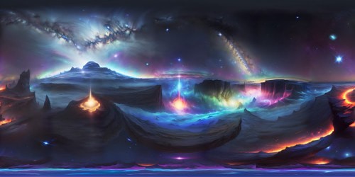 Radiant RealismVR360 panorama, masterpiece quality, ultra high-resolution textures, Milky Way grandeur. Brilliant star clusters, vivid galaxies, nebulae in surreal art style. Emphasizing expansive awe, infinite cosmic beauty.