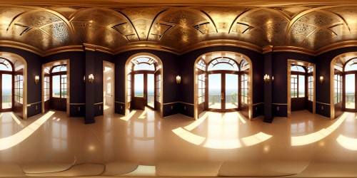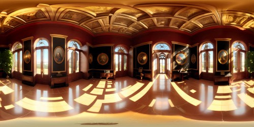 1960s Ethereal FantasyVR360, opulent palace interior, glittering chandeliers, Victorian ornate details, high marble columns, domed ceiling, autumnal stained glass. Ultra high res, mastery in digital painting details, Pixar-style luminosity. Enhanced VR360, luxe tapestry textures.